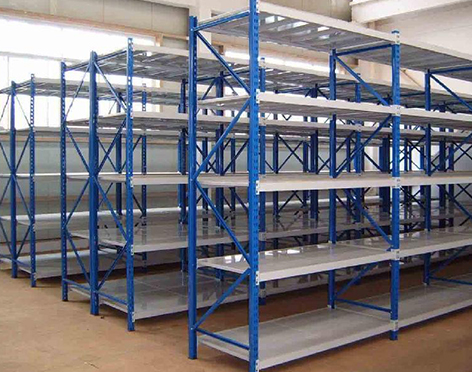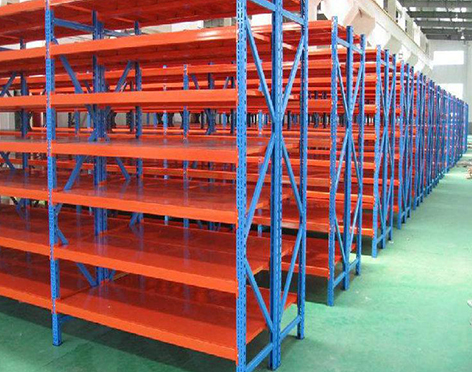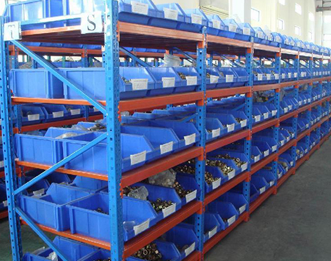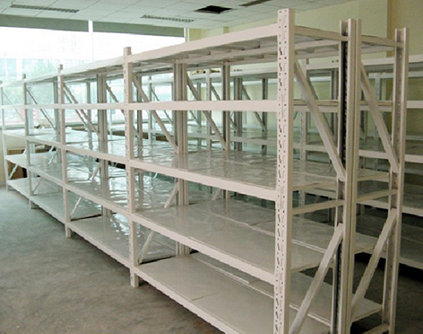 貨架由立柱、橫梁、橫撐、斜撐以及層板組合而成,尼龍自鎖螺栓有效防 止螺栓鬆動後引發貨架失穩,立柱衝有雙排菱型孔,同時,由於使用橫梁形 式,其層高可50mm調整,增加存儲的靈活性。層板可由鋼層板、木層板及鋼 網等構成,層板鋪設在橫梁之間,具有極大的承重量,充分節省空間,適合小 批量、多品種、小物品存放及人工儲存。